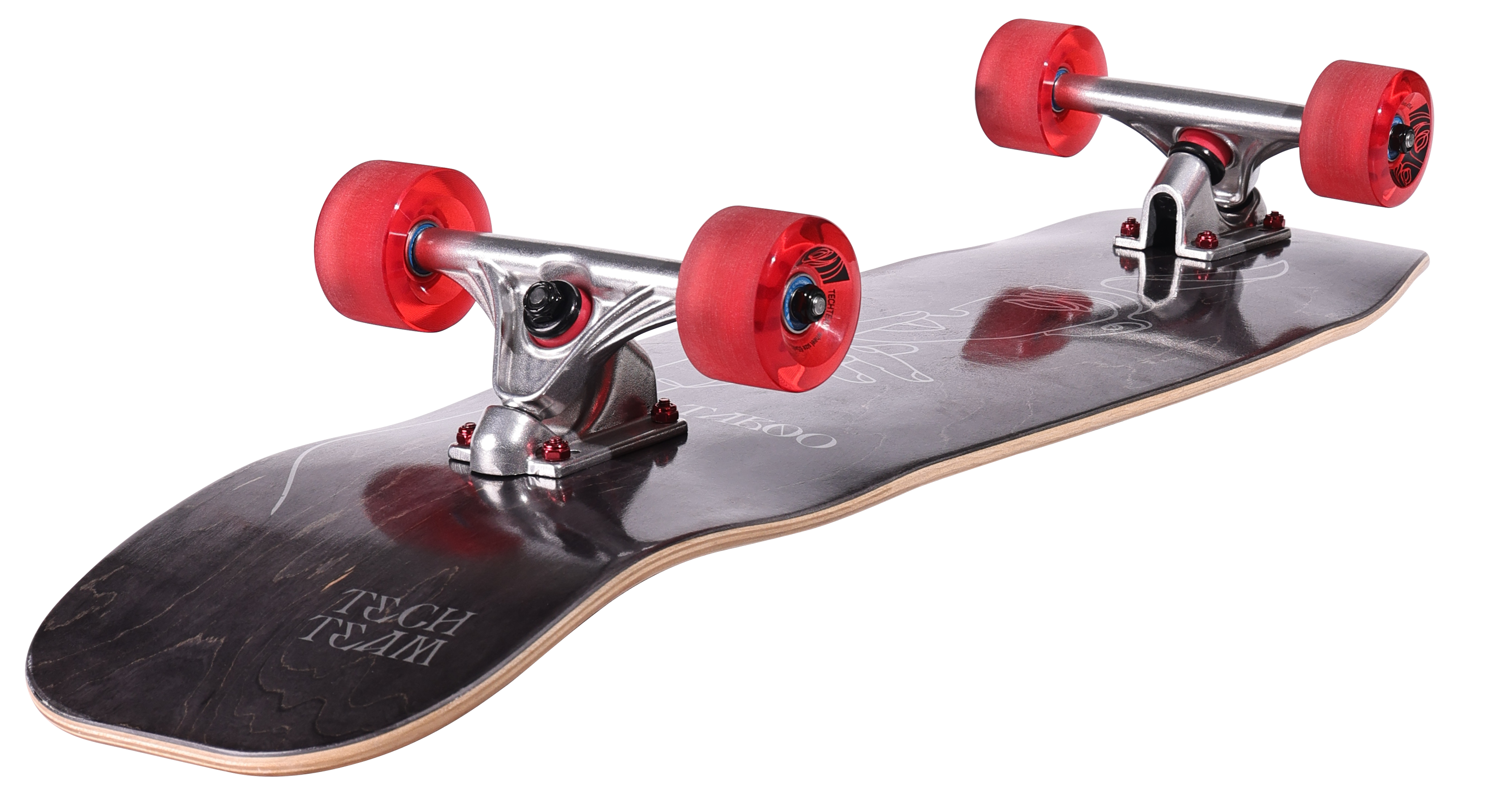 Круизер для города пампа и боула Taboo. Эта модель имеет увеличенный размер доски для полного контроля и средний конкейв, что позволит закладывать резкие повороты, делать слайды и исполнять базовые трюки скейтбординга. Доска выполнена из канадского клена с затупленым носом и тейлом, что делает ее более защищенной при ударах и удобной для дропов. Подвеска RKP 50 градусов дает необходимую маневренность. Колеса повышенной жескости 82А и диаметром 65мм обеспечат быстрый набор скорости и стабильный накат, новая специальная форма отлично подходит для слайдов, а обработанные зоны контакта с дорогой избавят вас от необходимости прикатывать доску перед выездом в парк